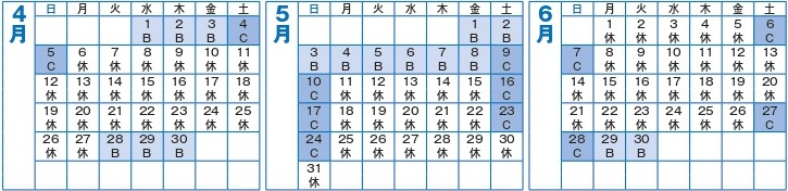 5/1除く毎日 | 4/27~30、 5/1・7~9・ 15・16・22・23、 6/5・6・26~29 |
