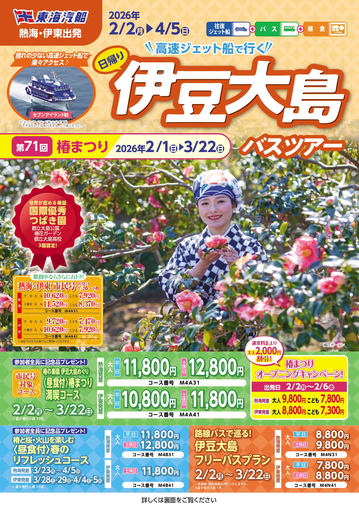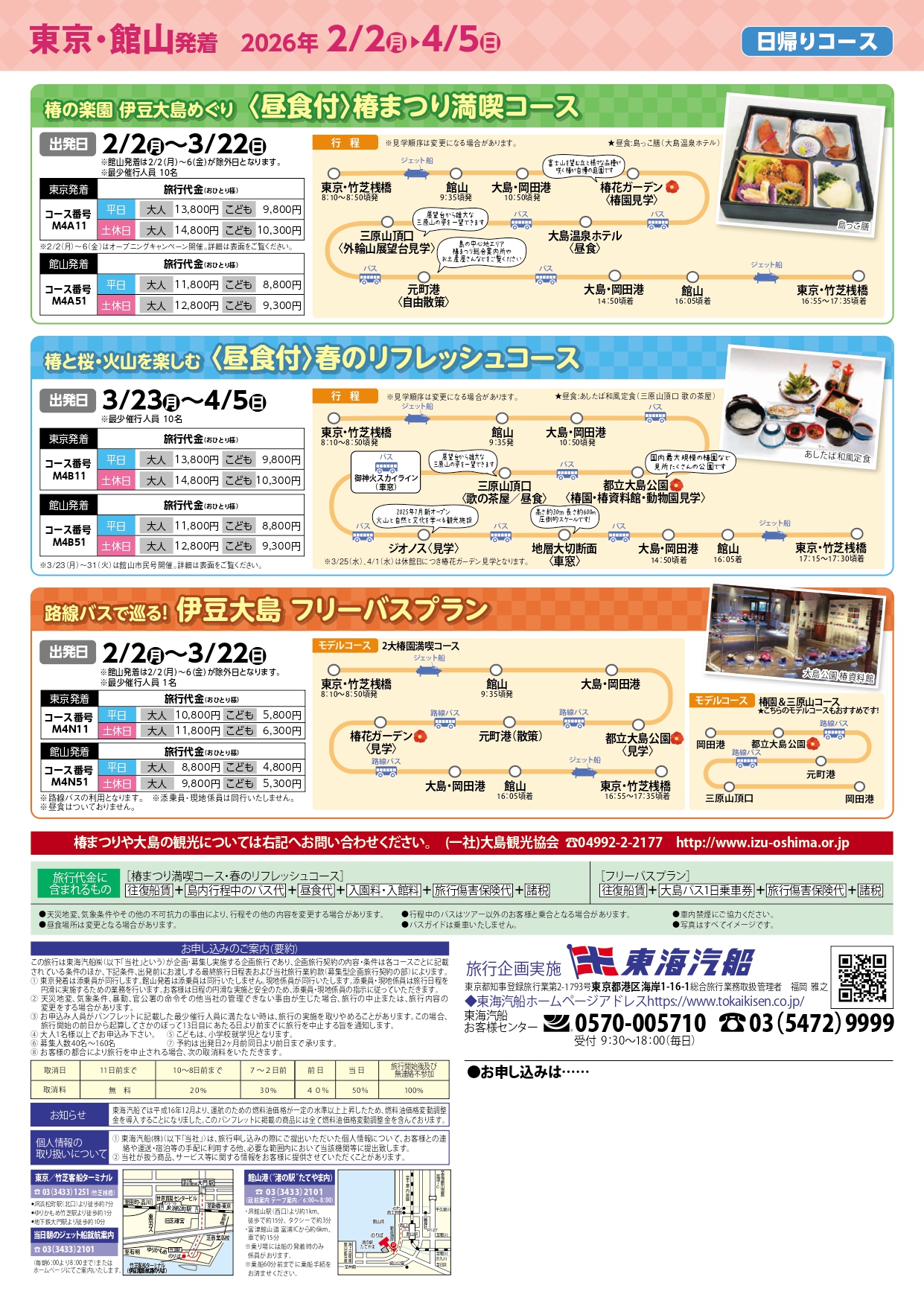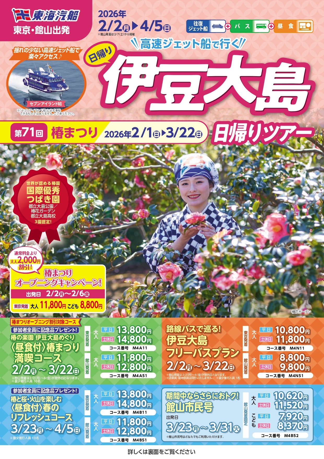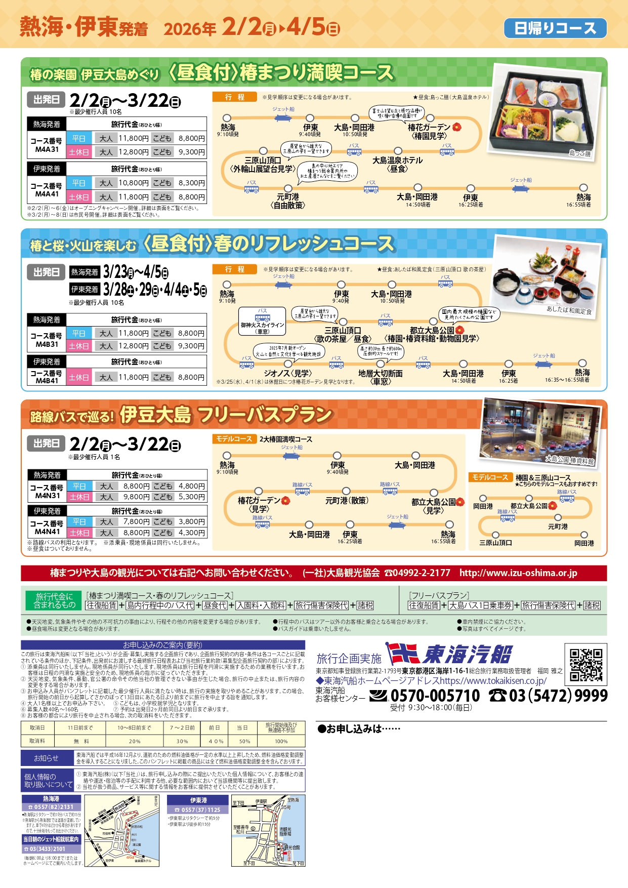 伊豆大島 日帰りバス観光ツアー(2026.2/2~4/5)