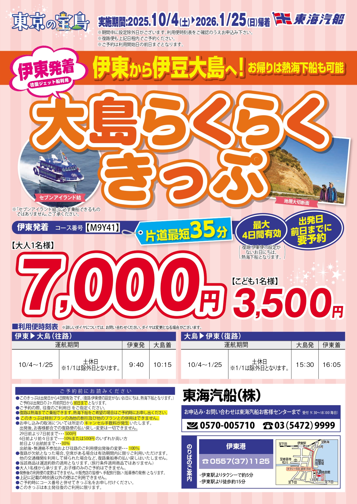 東海汽船お客様センターTEL 03-5472-9999(毎日9:30~18:00)