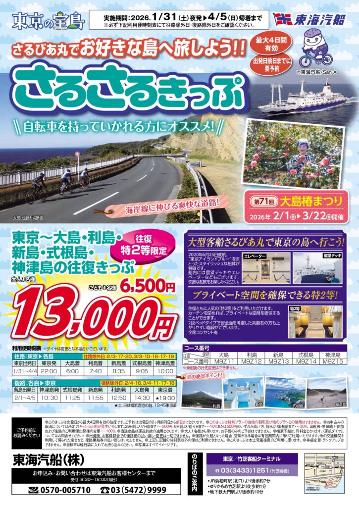 【東京発着大島】大人13,000円、こども6,500円