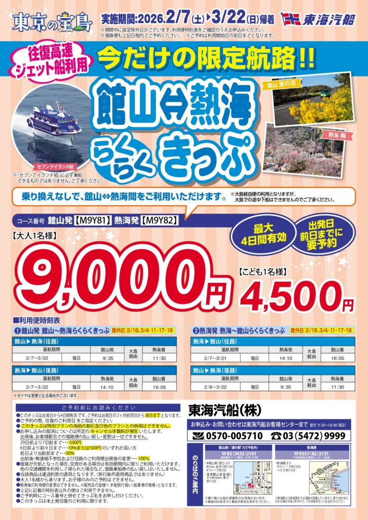 【館山⇔熱海】大人9,000円、こども4,500円