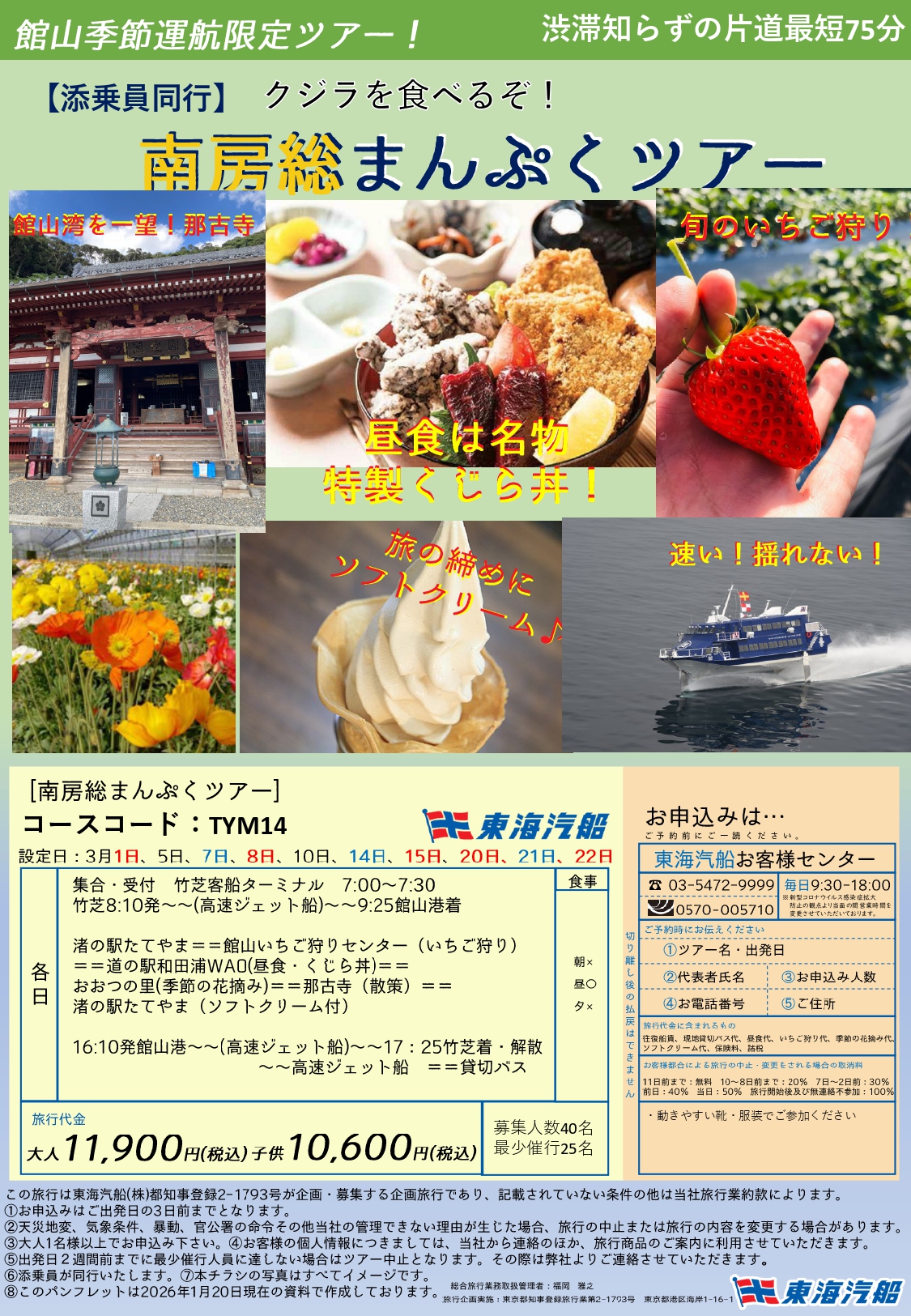 館山便の季節運航にあわせて、館山日帰りツアーを開催します。