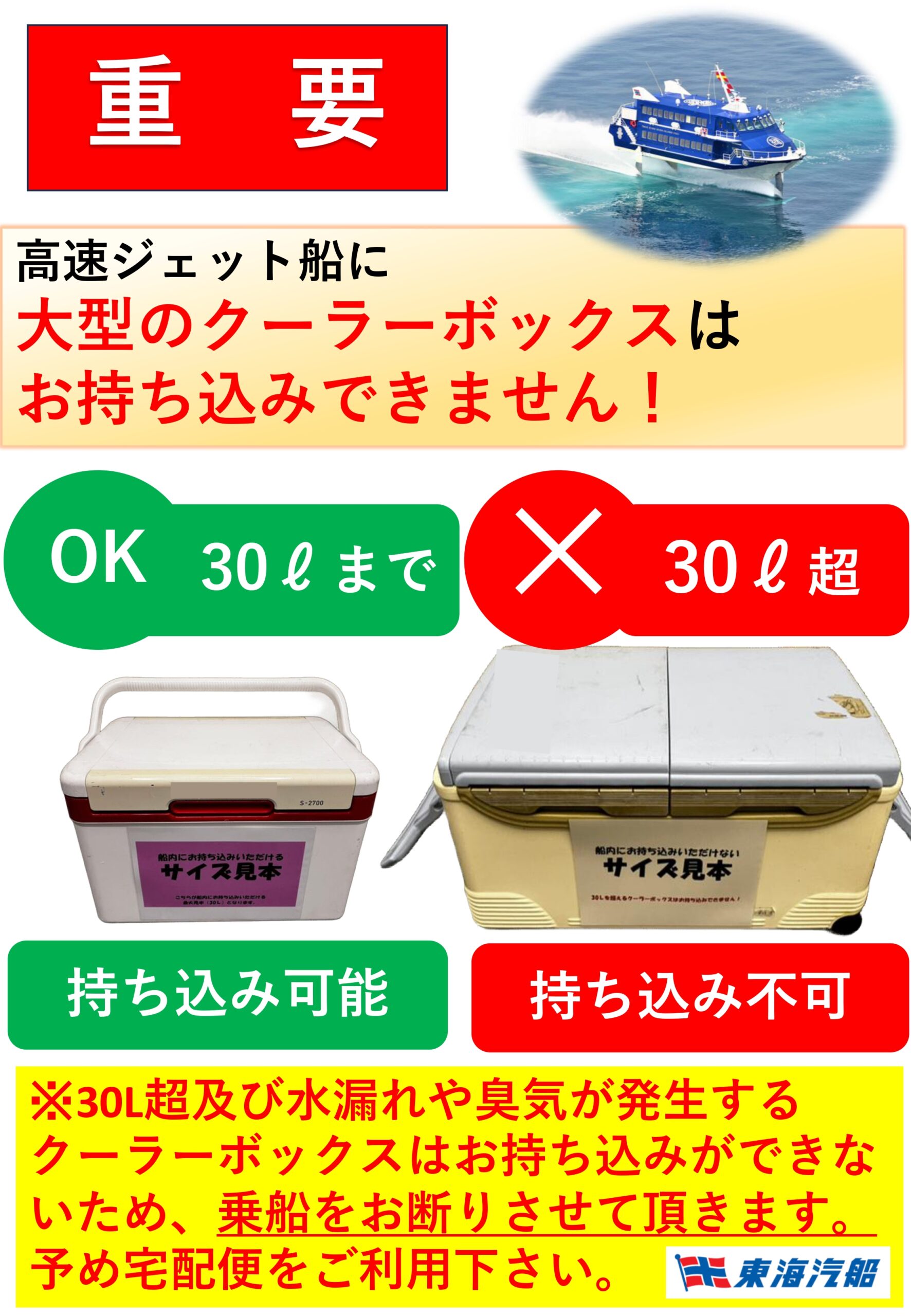 高速ジェット船へのクーラーボックス持込制限について(※30L超は持込不可)