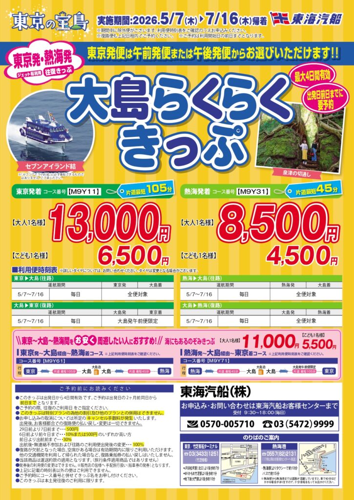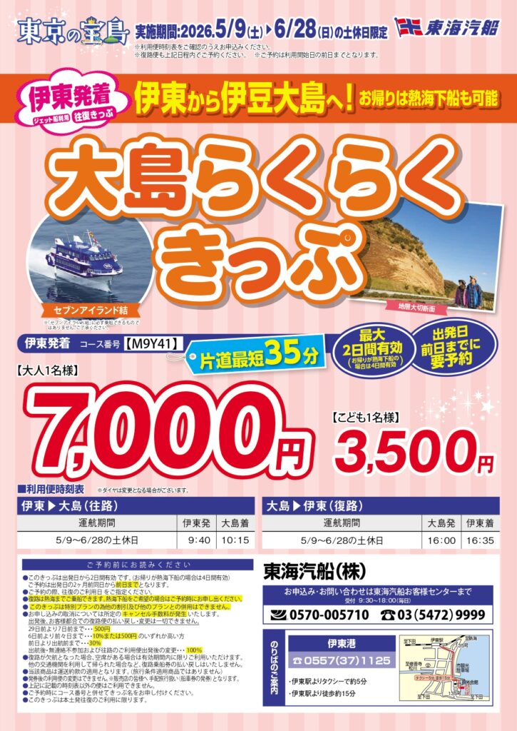 【伊東発着 大島】大人7,000円、こども3,500円