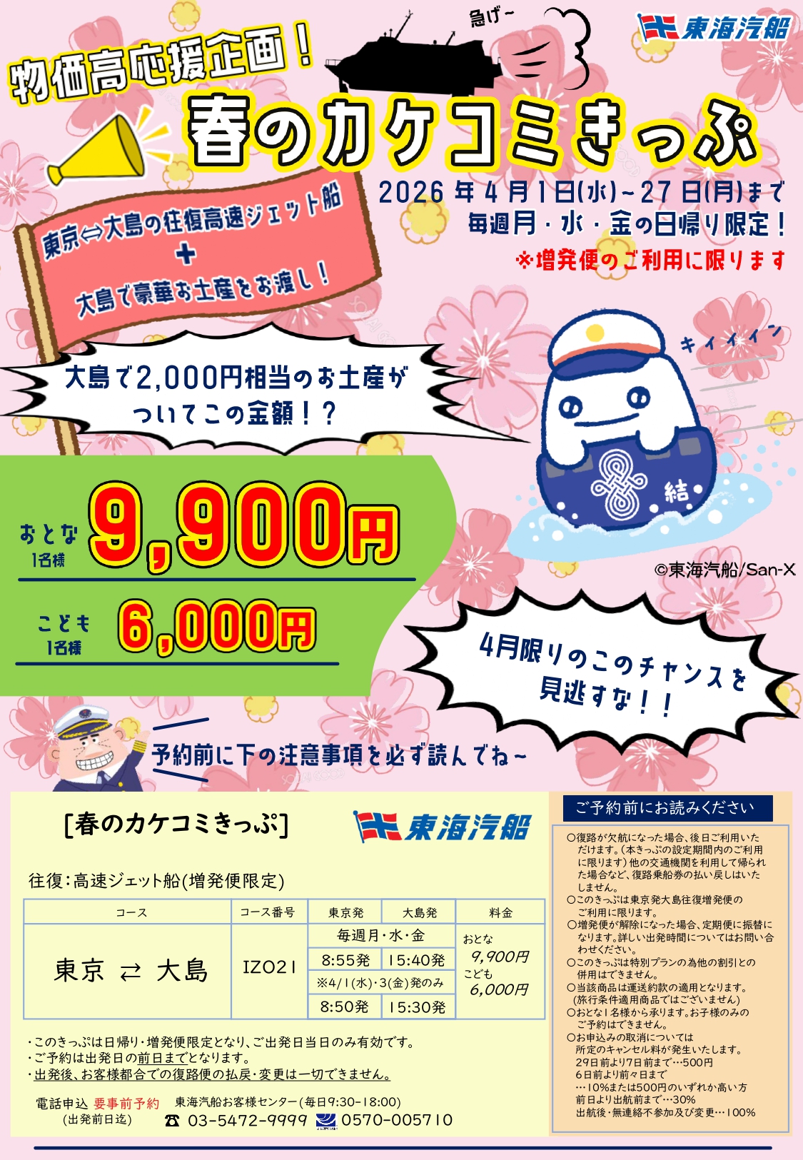9,900円で伊豆大島まで往復できます!4月限りのチャンス!