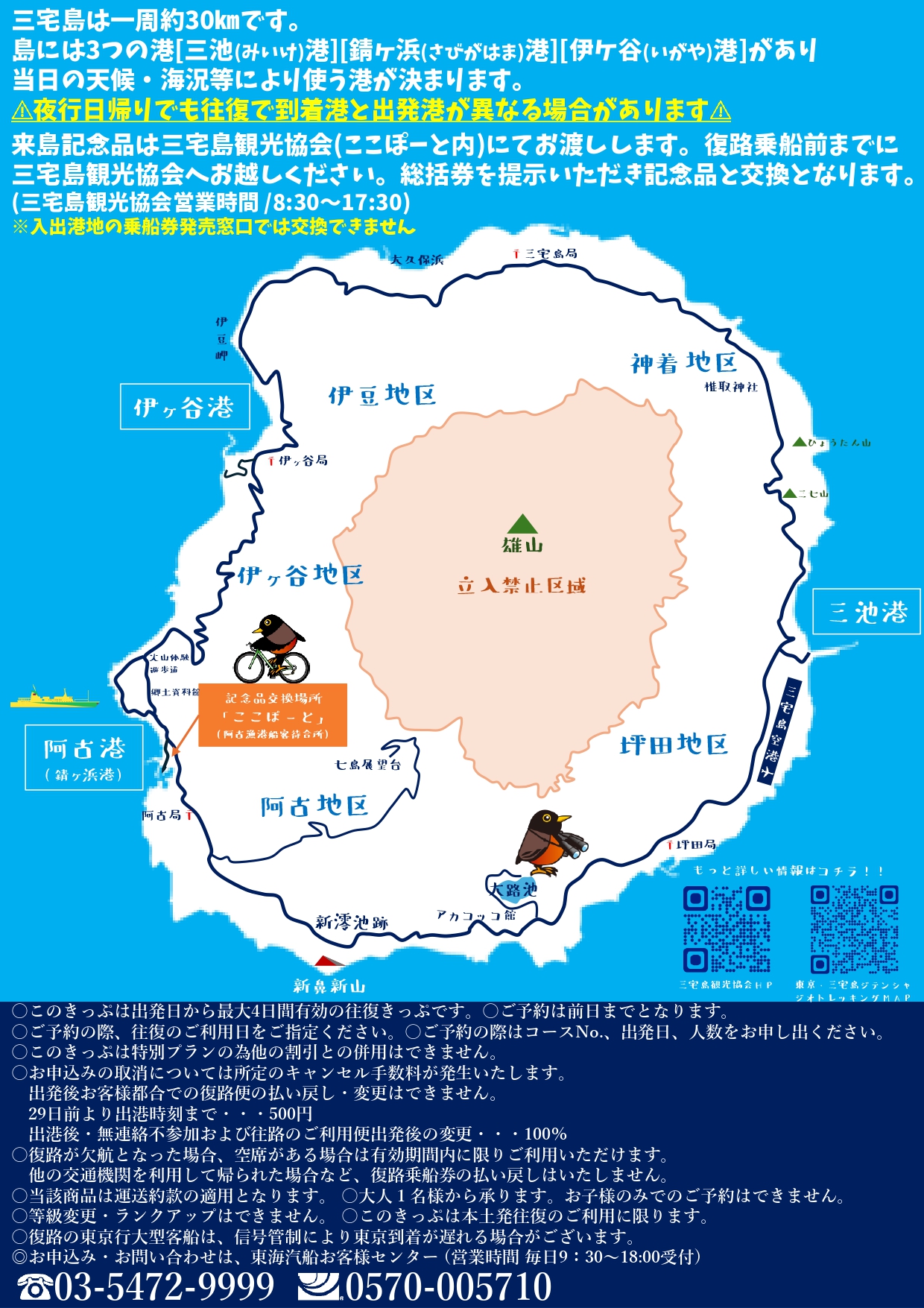 ※来島記念は三宅島観光協会(ここぽーと内)にてお渡しします。