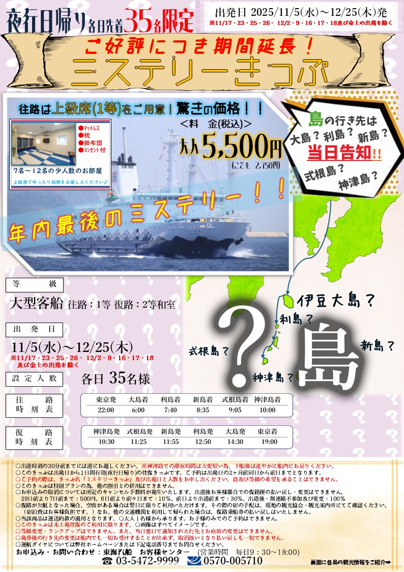行先は大島・利島・新島・式根島・神津島のいずれか⁉
