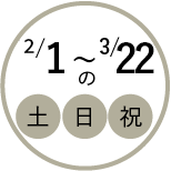 会期:2月1日(日)〜3月22日(日)の土・日・祝日
