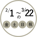 開催日:2月1日(日)〜3月22日(日)の金・土・日・祝日