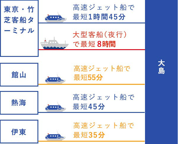東京から高速ジェット船で最短1時間45分!